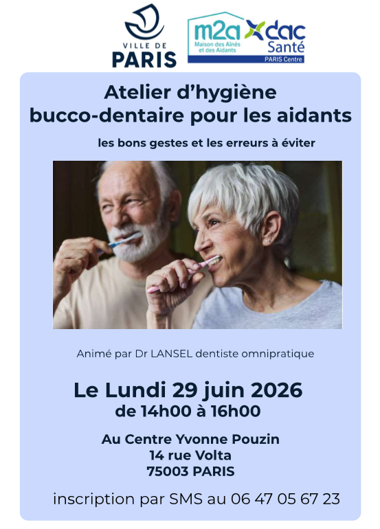 La M2A et le centre Yvonne Pouzin proposent un atelier animé par Dr LANSEL dentiste omnipratique pour apprendre les bons gestes afin d'aider votre proche au quotidien. Les erreurs à éviter et les questions que l'on n'ose pas poser.
