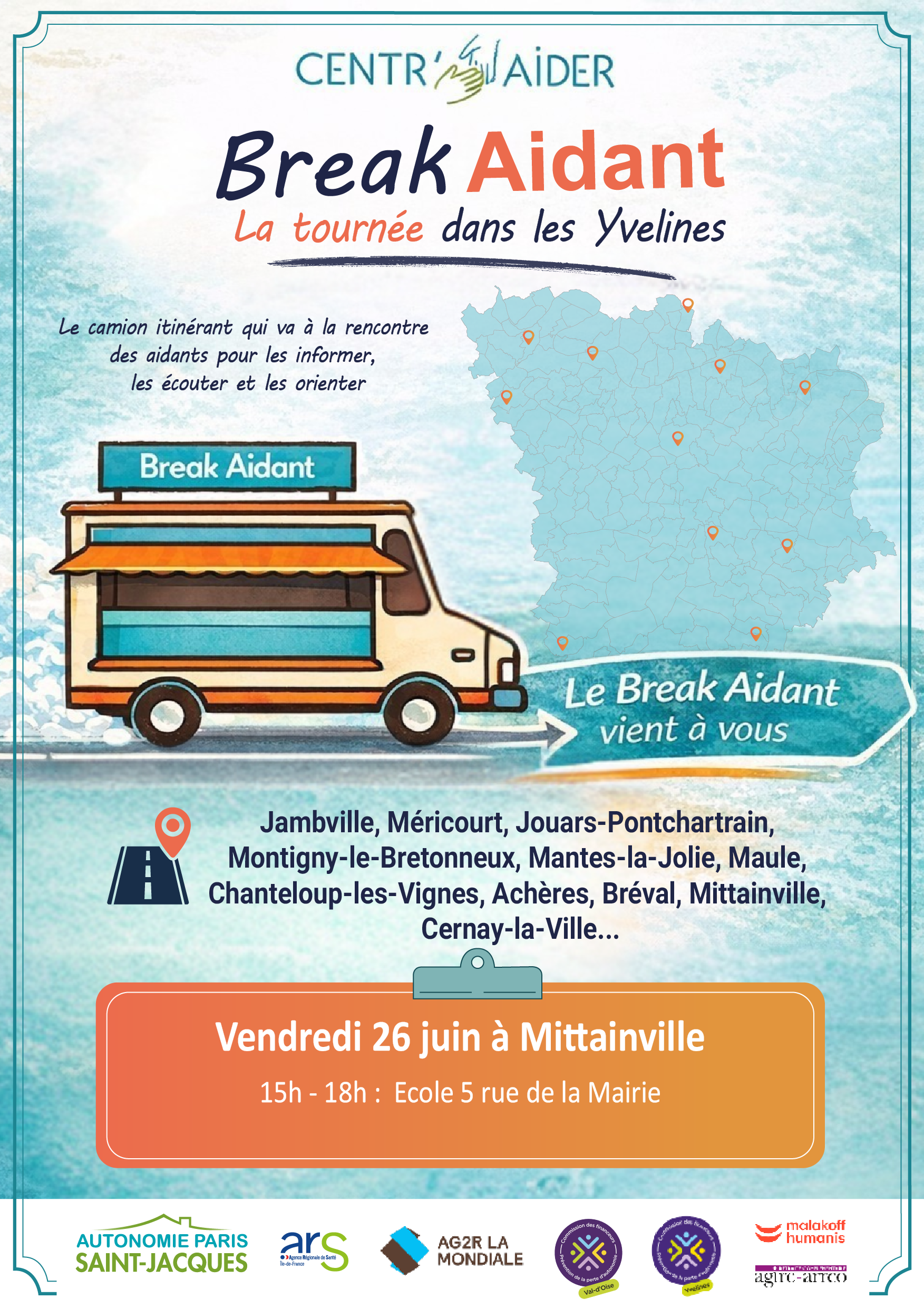 Le Break aidant s’associe à Mobil’Villages et vient à votre rencontre pour vous écouter et vous informer sur vos droits, les solutions de soutien et les dispositifs d’accompagnement existants.